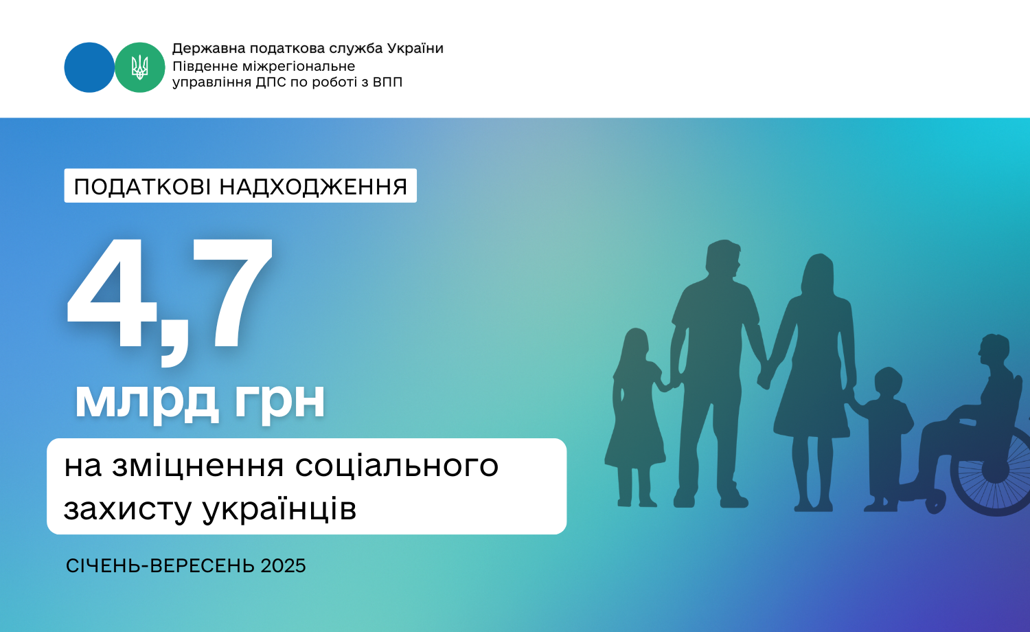 У січні–вересні 2025 року великі компанії, що перебувають на обліку у Південному міжрегіональному управлінні ДПС по роботі з великими платниками податків, сплатили 4,7 млрд грн єдиного внеску на загальнообов’язкове державне соціальне страхування (ЄСВ). Ці підприємства працюють у різних регіонах країни та забезпечують значну частку надходжень до бюджету.