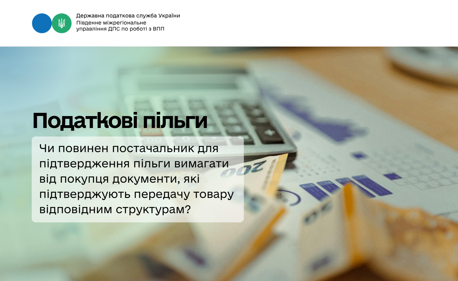 Чи повинен постачальник для підтвердження пільги, визначеної у п.п. 5 п. 32 підрозд. 2 розд. XX Податкового кодексу України, вимагати від покупця документи, які підтверджують передачу товару відповідним структурам?