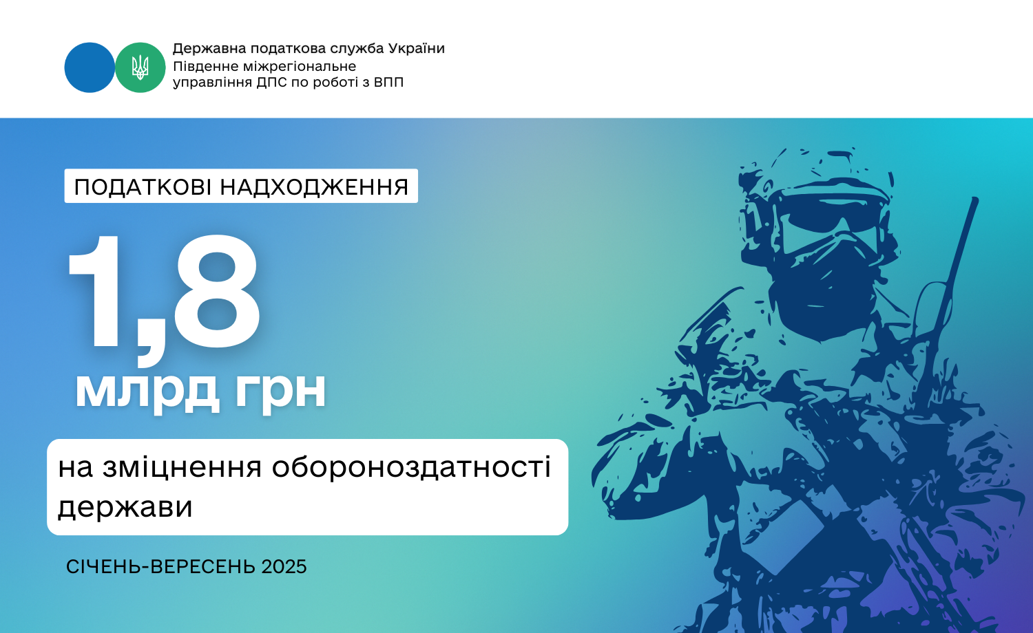 За ІІІ квартали 2025 року великі підприємства, що перебувають на обліку у Південному міжрегіональному управлінні ДПС по роботі з великими платниками податків, перерахували до держбюджету понад 1,8 млрд грн військового збору. Це на понад 30 млн грн більше, ніж за аналогічний період торік. Така динаміка підтверджує: бізнес стабільно підтримує фінансування обороноздатності країни.
