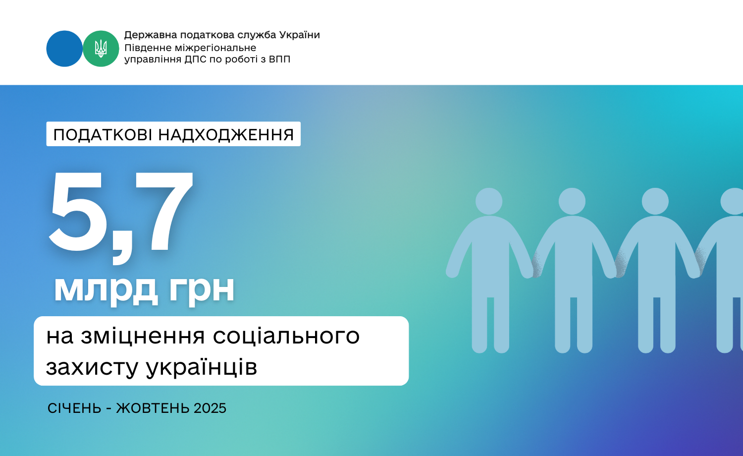У січні–жовтні 2025 року великі компанії, що перебувають на обліку в Південному міжрегіональному управлінні ДПС по роботі з великими платниками податків, сплатили понад 5,7 млрд грн єдиного соціального внеску (ЄСВ). Це на 156,5 млн грн більше, ніж за аналогічний період минулого року.