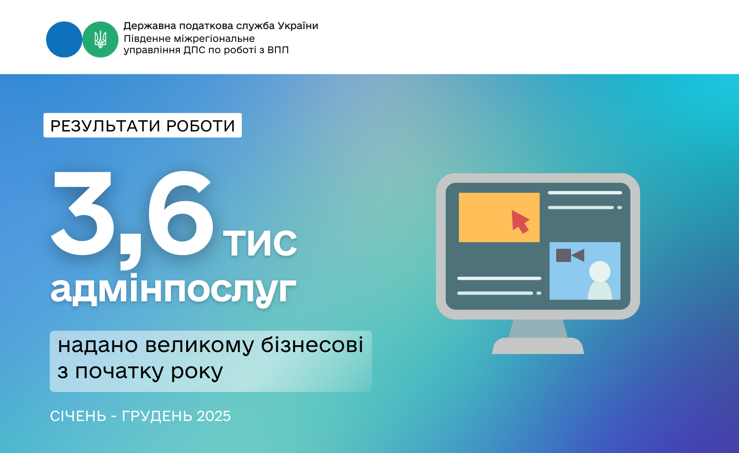 Упродовж січня–грудня 2025 року Південне міжрегіональне управління ДПС по роботі з великими платниками податків забезпечило надання 3 699 адміністративних послуг. Це підтверджує стабільний попит з боку бізнесу на податкові сервіси та консультаційну підтримку.