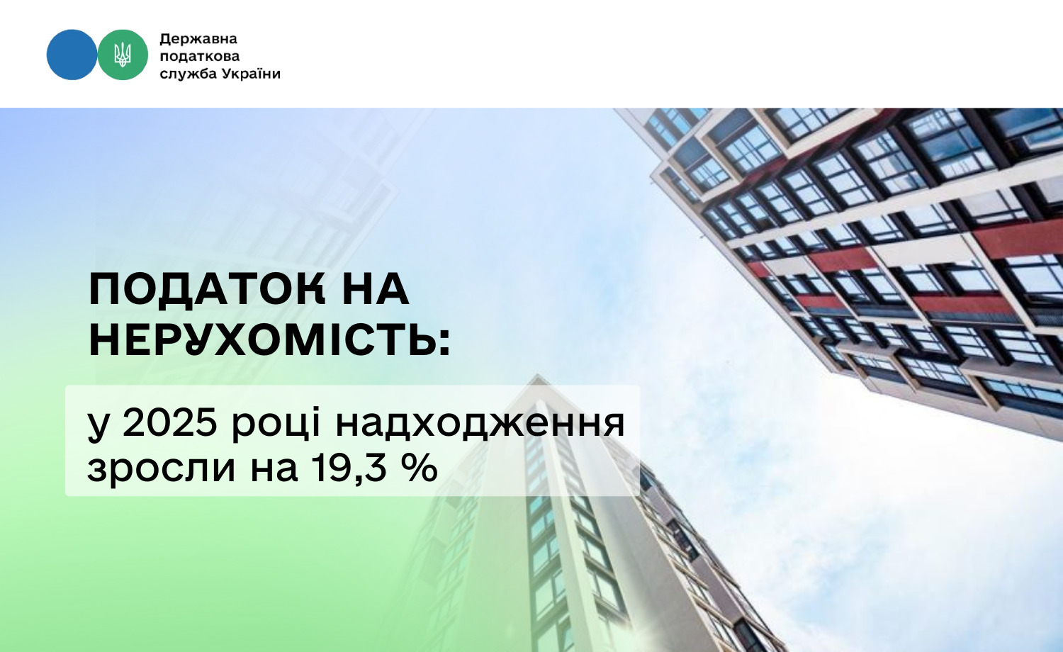 Податок на нерухомість: у 2025 році надходження зросли на 19,3 %