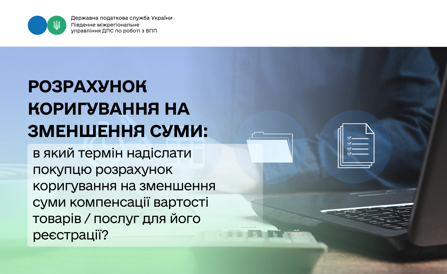 На дату виникнення події, визначеної п. 192.1 ст. 192 ПКУ, що призвела до коригування суми податкових зобов’язань і податкового кредиту, постачальник зобов’язаний скласти розрахунок коригування і надіслати його отримувачу (покупцю) для подальшої його реєстрації в ЄРПН. З метою забезпечення коректного ведення податкового обліку розрахунок коригування на зменшення суми компенсації вартості товарів / послуг доцільно надсилати отримувачу (покупцю) протягом того операційного дня, у якому його було складено.