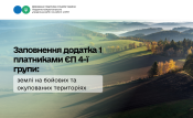 При цьому на підставі п. 46.4 ст. 46 ПКУ юридична особа – платник єдиного податку четвертої групи подає Додаток 1 до Декларації з наданням інформації щодо земельних ділянок, розташованих на територіях активних бойових дій та/або на тимчасово окупованих російською федерацією територіях України, які належать такій особі на праві власності або користування.